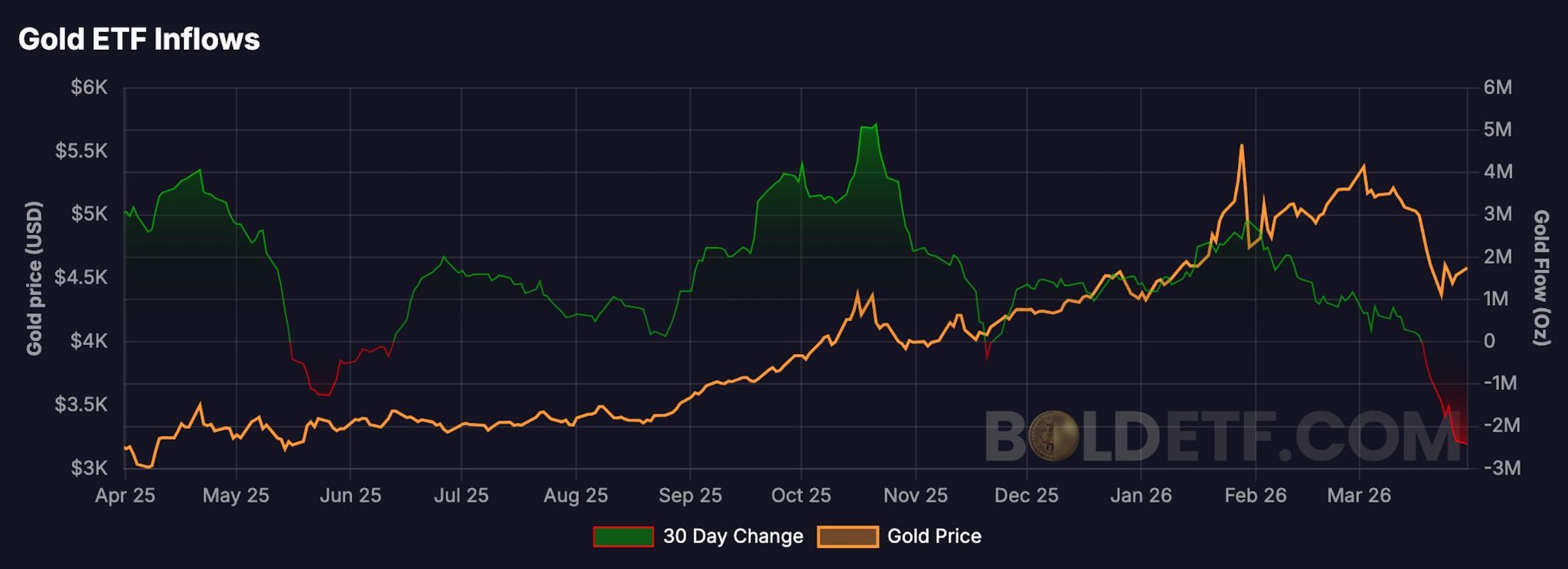 What makes the comeback more striking is what was happening in gold at the same time. While Bitcoin ETFs were recovering, gold ETFs shed an estimated $9 billion in cumulative net outflows over just three weeks, with GLD recording its largest single-day withdrawal in over two years. This divergence has prompted serious questions about whether institutional capital is beginning to rotate away from traditional safe-haven assets and toward Bitcoin as an alternative store of value.