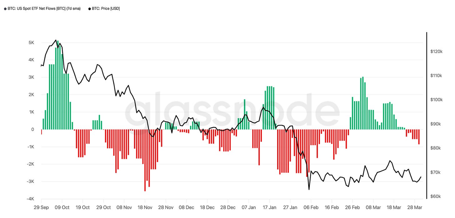 U.S. spot Bitcoin ETFs recorded their strongest monthly inflows since October 2025 (~$1.6 billion in net inflows in March)