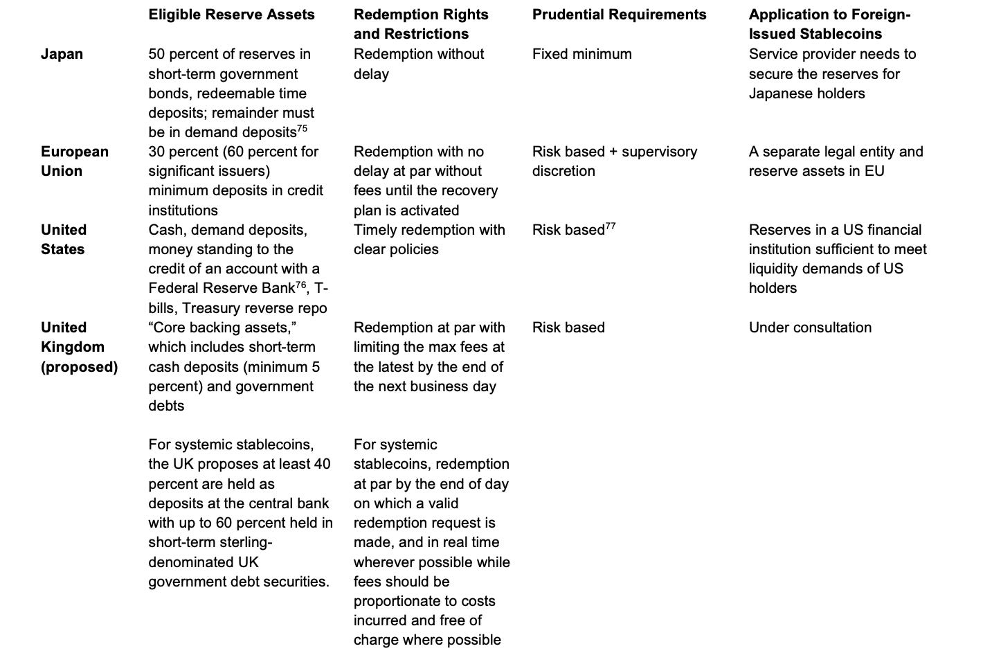 Stablecoins must be pegged to the Japanese Yen or another legal tender and fully redeemable at face value, meaning holders can always exchange their stablecoin for the equivalent in cash.